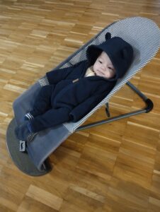 朝送り出しでジャンプスーツを着せると、スリーパー代わりになって