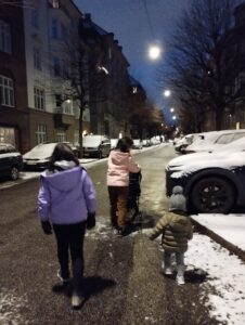 ずっと曇り空で、雪がバサバサっと降ったり落ち着いたりする天気でした。